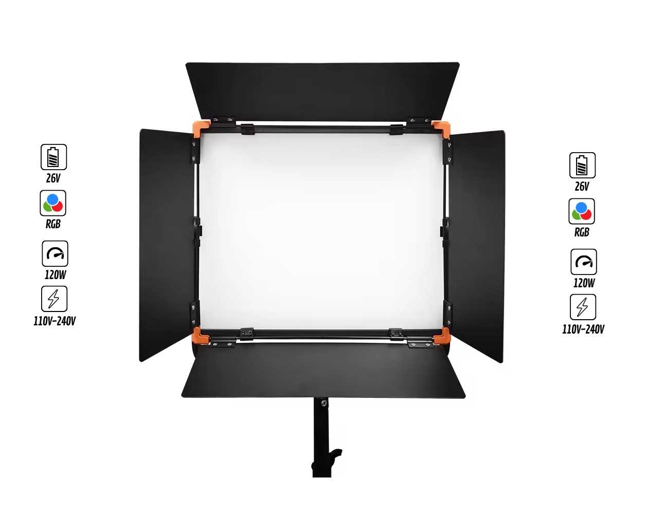 Avec une puissance de 1200 W, le GL-1200C délivre une lumière intense et homogène, garantissant une reproduction fidèle des tons et une flexibilité maximale. Il est également équipé de modes d’effets dynamiques pour créer des ambiances visuelles uniques.